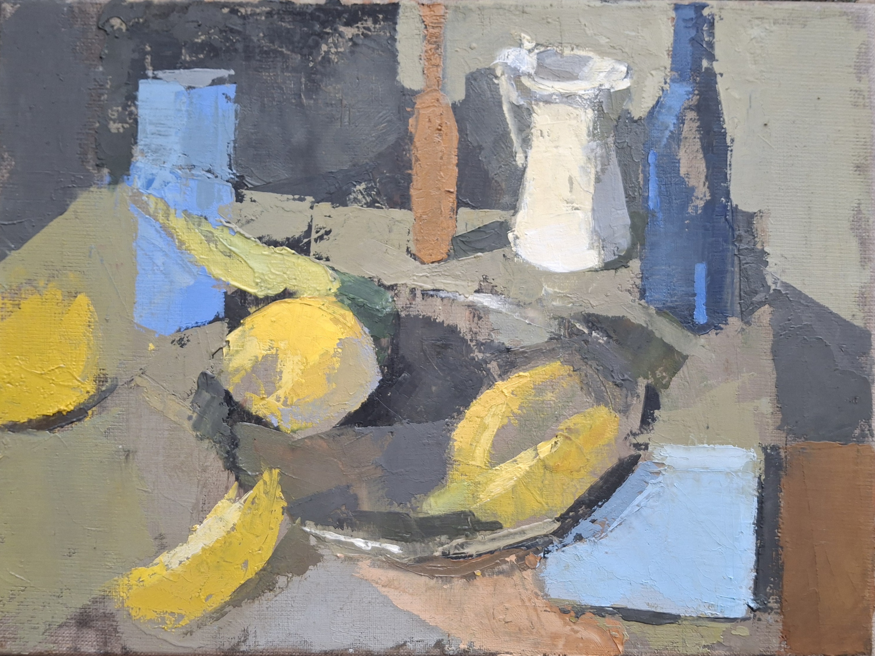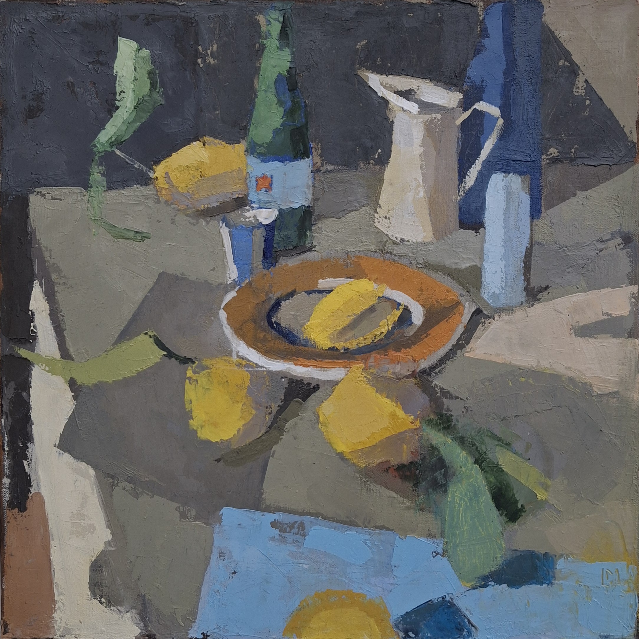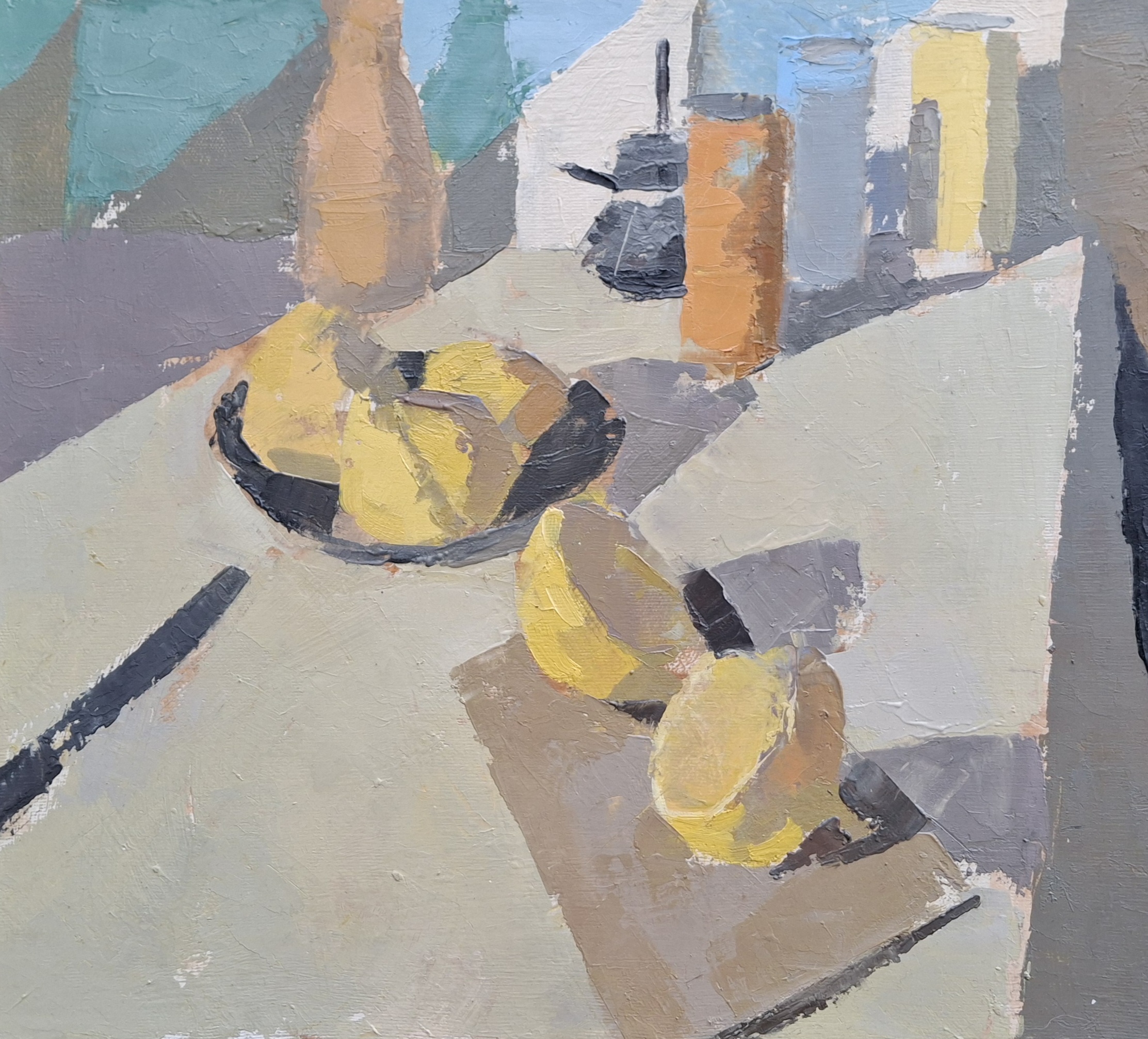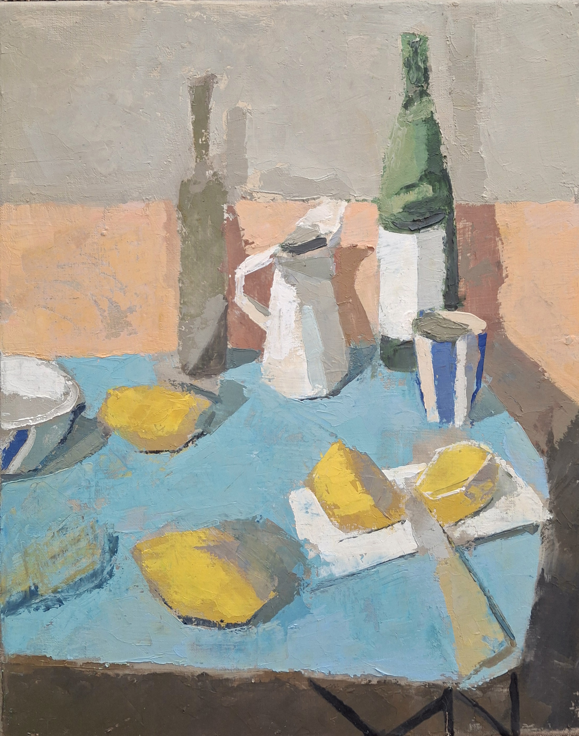 Limoni sul Tavolo Verde Acqua 20x20" oil on linen